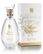 delikatnej białej lilii, piwonii, świeżych liści fiołka i róży Baie.